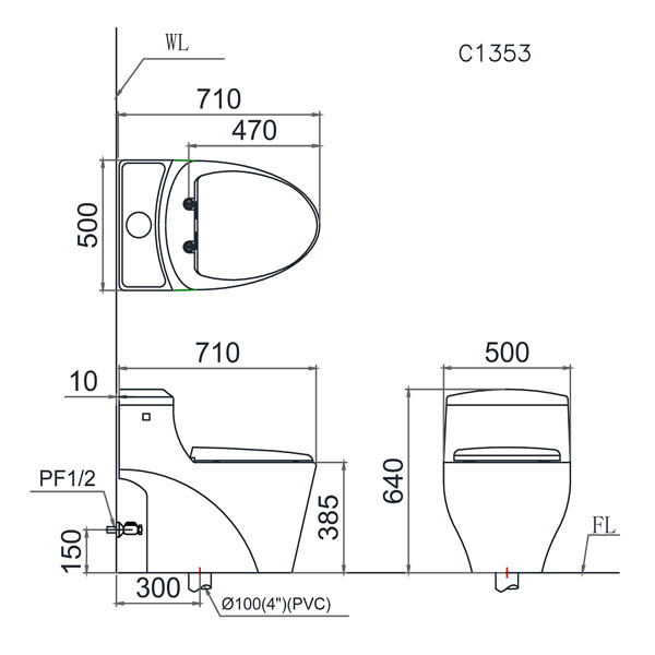 Kích thước (dài x rộng x cao) :710x500x640mm