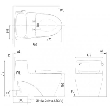 Bàn cầu xả tay gạt : Siêu tiết kiệm nước 5L