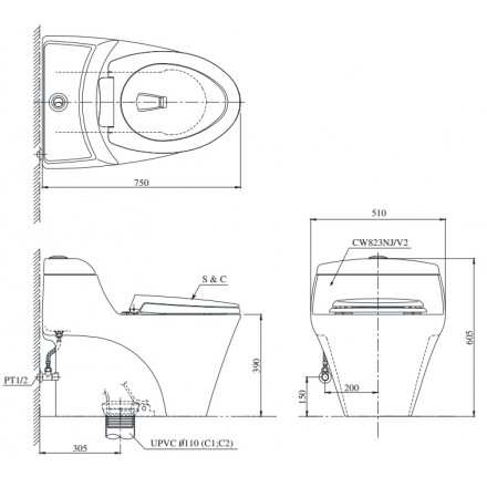 Bàn cầu 1 khối ToTo CW823NW/F