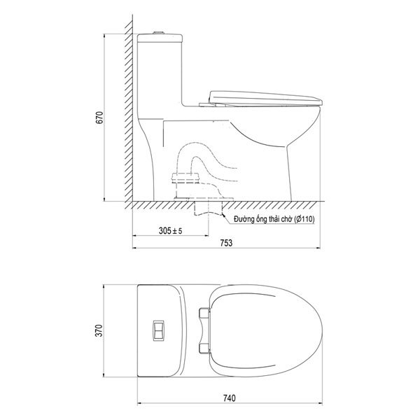 Công nghệ xả: Xả xoáy Vortex kết hợp Syphon Jet, tráp nhựa ngăn mùi hôi