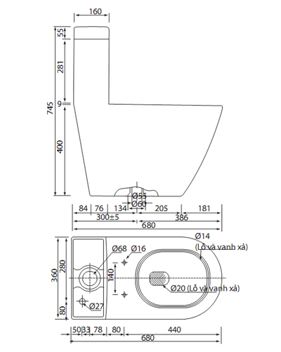 Kích thước: 745 x 360 x 680 (cao x rộng x dài)
