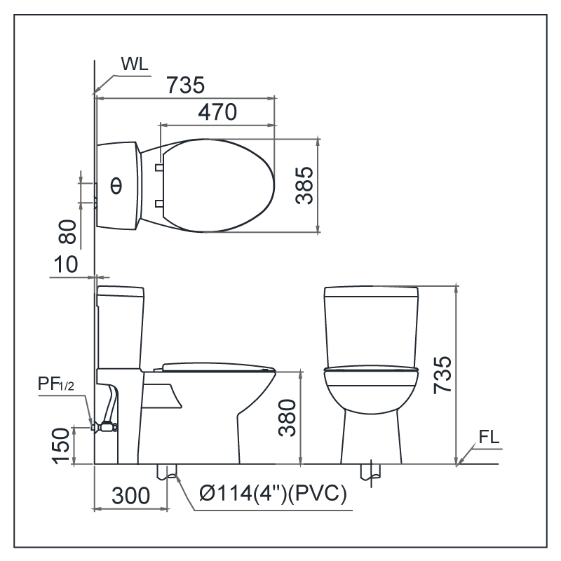 Kích thước: 735 x 385 x 735 mm (dài x rộng x cao)
