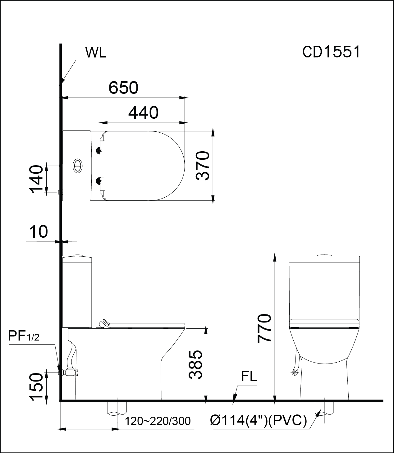 Tâm thoát phân: 120-200/300 mm