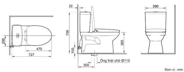 - Kiểu xả Siphon dạng nhấn 2 mức: 4.8L/3.0L