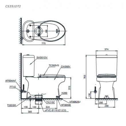 Bàn cầu 2 khối ToTo CS351DT2