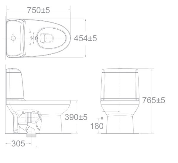 Kiểu sản phẩm: bồn cầu 2 khối nắp êm