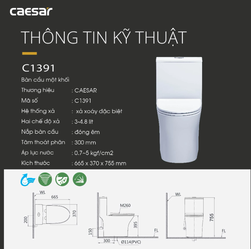 Thông tin bàn cầu Caesar C1391