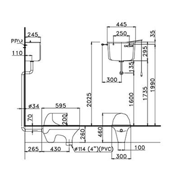 Tâm thoát phân: 695 mm