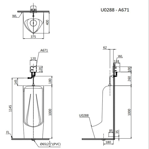Tên sản phẩm: Bệ tiểu nam đặt sàn Caesar U0288