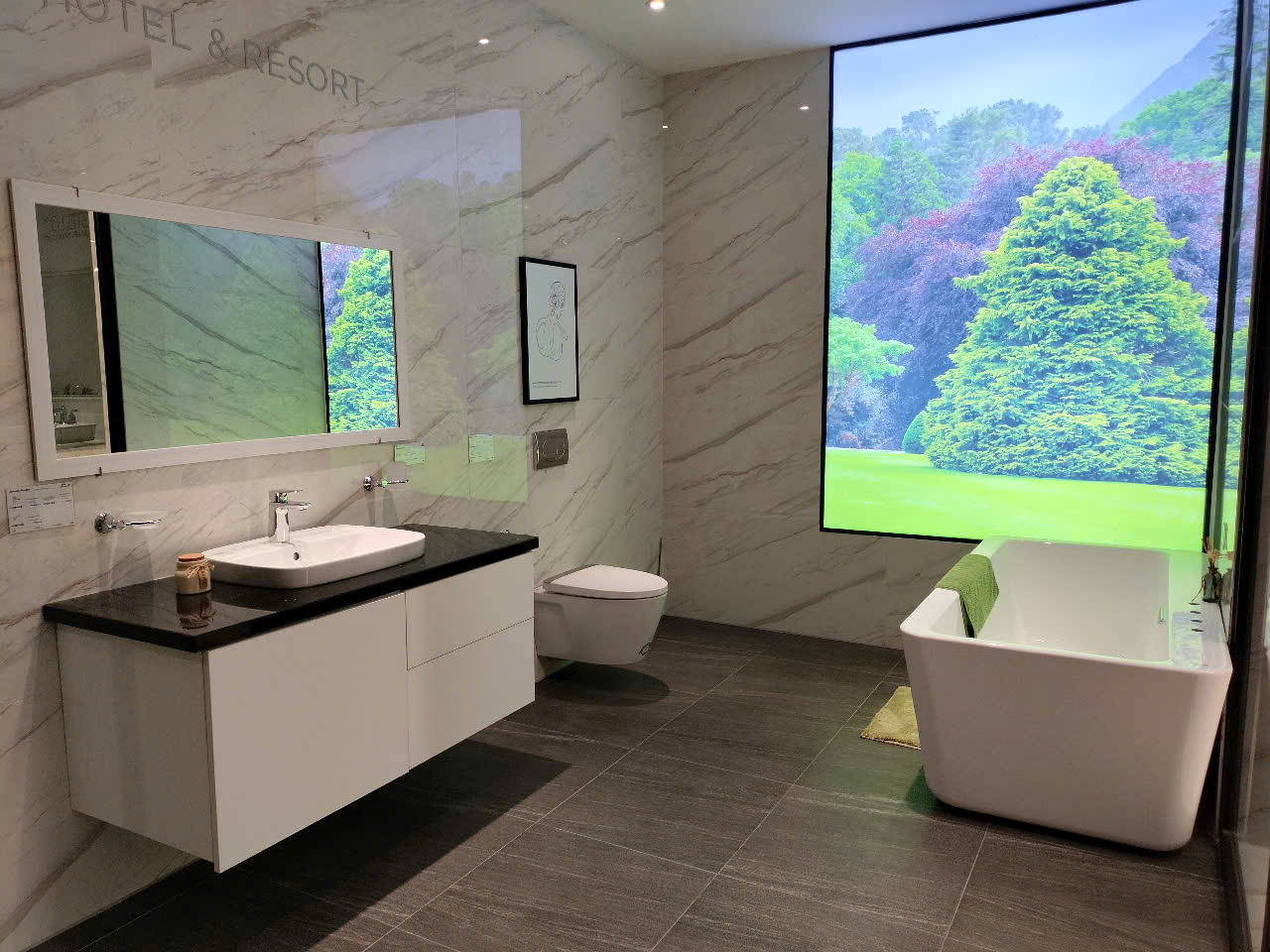 Các không gian nhỏ nên ưu tiên các dòng sản phẩm nhỏ gọn, dễ dàng lắp đặt và tiết kiệm diện tích như bàn cầu treo tường, lavabo dạng đá mỏng. Trong khi đó, các phòng rộng thoải mái có thể lựa chọn các mẫu lớn hơn, sang trọng, tích hợp nhiều tính năng.