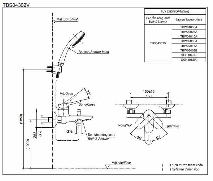 Áp lực nước: 0.15MPa ~ 0.75MPa