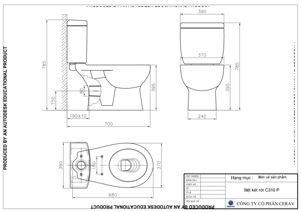 Tên sản phẩm: Bàn cầu 2 khối Ceravi C310P