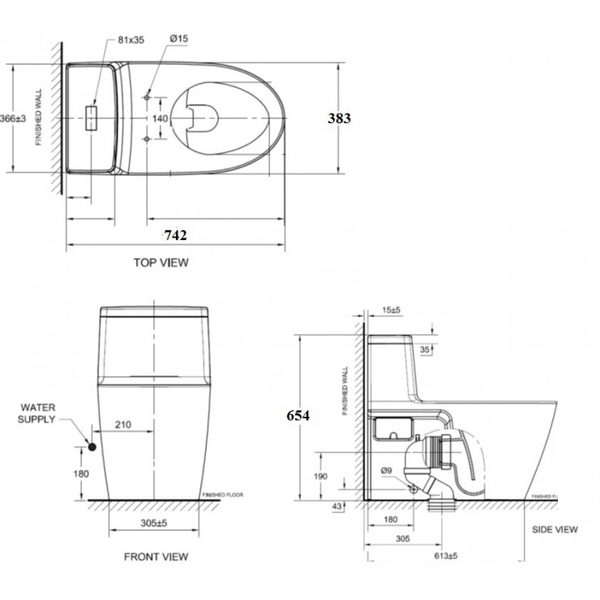Thân bồn cầu: Bồn cầu 1 khối American Standard
