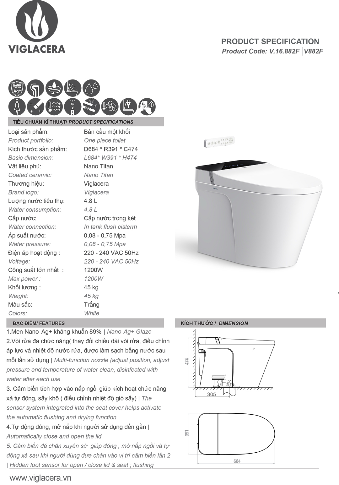 Nắp bồn cầu điện tử thông minh Viglacera V882F không chỉ mang đến sự tiện ích với nhiều tính năng thú vị mà còn góp phần nâng cao trải nghiệm sử dụng cho người dùng. Với thiết kế hiện đại, khả năng kháng khuẩn và công nghệ khử mùi tiên tiến, sản phẩm này xứng đáng là một phần không thể thiếu cho không gian sống hiện đại của bạn. Hãy lựa chọn Viglacera V882F để tận hưởng sự khác biệt và tiện nghi trong mỗi lần sử dụng.