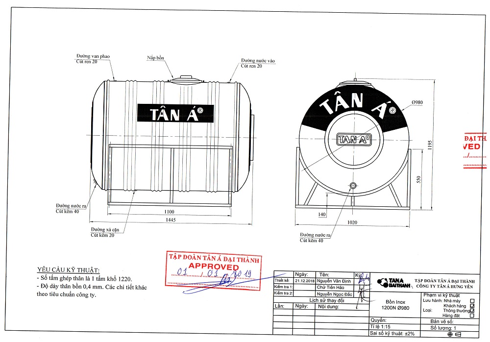Bồn nước Inox Tân Á 1200L ngang TA 1200 (f980)
