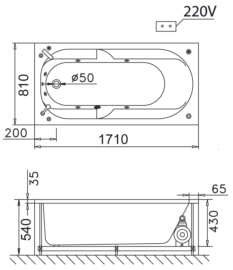 - Kích thước: 1710 x 810 x 570 (dài x rộng x cao)