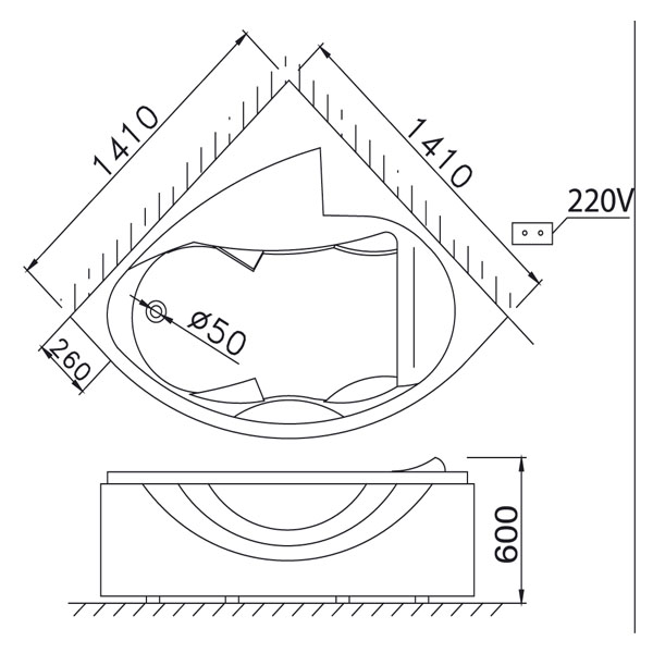 Kích thước: 1410 x 1410 x 600 (dài x rộng x cao)