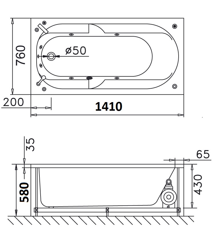 Kích thước: 1410 x 760 x 580 (dài x rộng x cao)