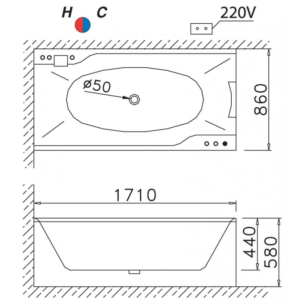 Kích thước: 1710 x 860 x 580 mm (dài x rộng x cao)