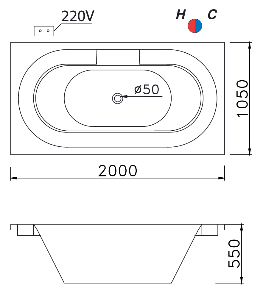 Kích thước (D x R x C): 2000 x 1050 x 550 mm