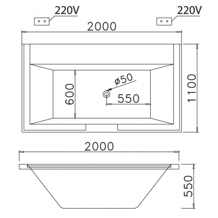 - Kích thước: 2000 x 1100 x 550