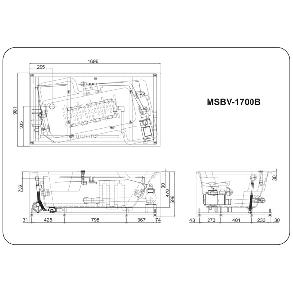 Tên sản phẩm: Bồn Tắm Massage Inax MSBV-1700B/BW1