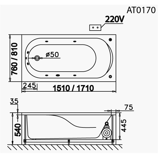 Bồn tắm nằm AT0170 Caesar 1.7M được sản xuất trên dây chuyền công nghệ hiện đại của Đài Loan.