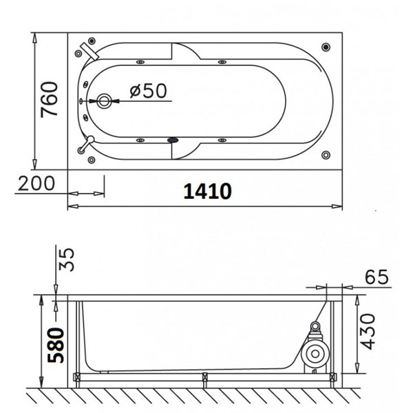Kích thước: 1410 x 760 x 580 (dài x rộng x cao)