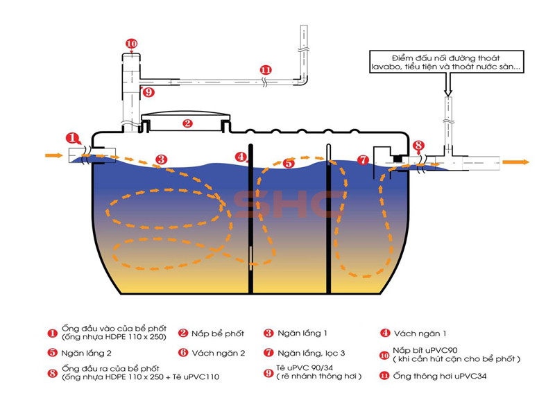 Thi công nhanh chóng và tiết kiệm: Với thiết kế liền khối gọn nhẹ, việc thi công lắp đặt bồn Septic SHC trở nên rất dễ dàng. Tiết kiệm thời gian và chi phí so với các giải pháp xây bể truyền thống.