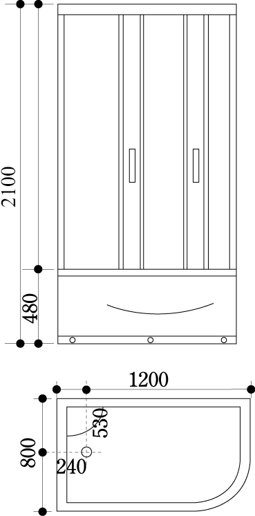 Kích thước (size): 1200x800x2100 mm, đế cao: 480 mm.