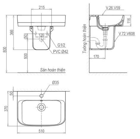 Loại sản phẩm: Chậu rửa mặt treo tường