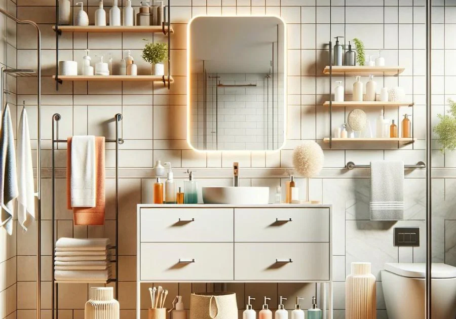 Kệ đựng đồ cũng cần được lựa chọn cẩn thận. Thay vì các loại tủ lớn chiếm nhiều diện tích, hãy sử dụng các loại kệ treo tường, kệ góc hoặc kệ đa năng có thể tận dụng tối đa không gian trên cao và các góc chết trong phòng tắm. Các loại kệ này không chỉ giúp bạn sắp xếp đồ đạc gọn gàng mà còn tạo điểm nhấn trang trí cho phòng tắm.