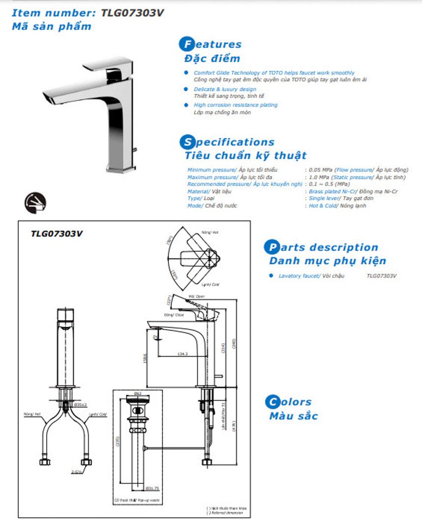 Vòi lavabo TOTO TLG07303V gật gù nóng lạnh GE