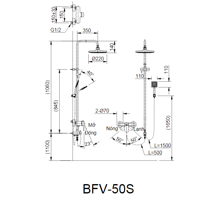 - Vòi cây sen tắm INAX BFV-50S nóng lạnh