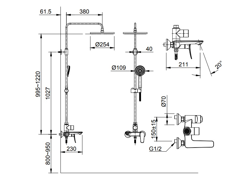 - Áp lực nước : 0.05 MPa ~ 0.75 MPa
