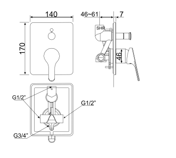 Vòi sen tắm âm tường American Standard WF-1420 nóng lạnh dòng Concept Square