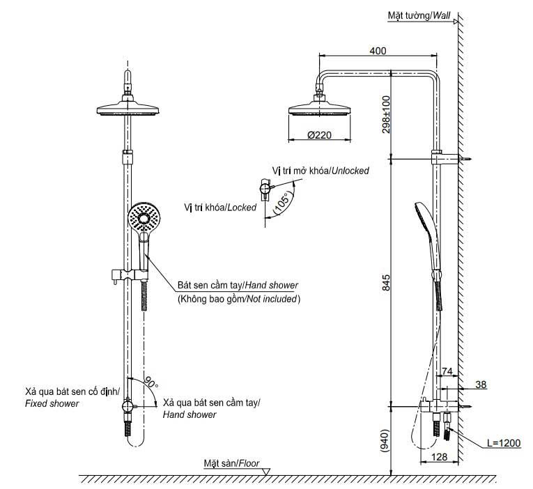 Áp lực nước : 0.05MPa ~ 0.75MPa