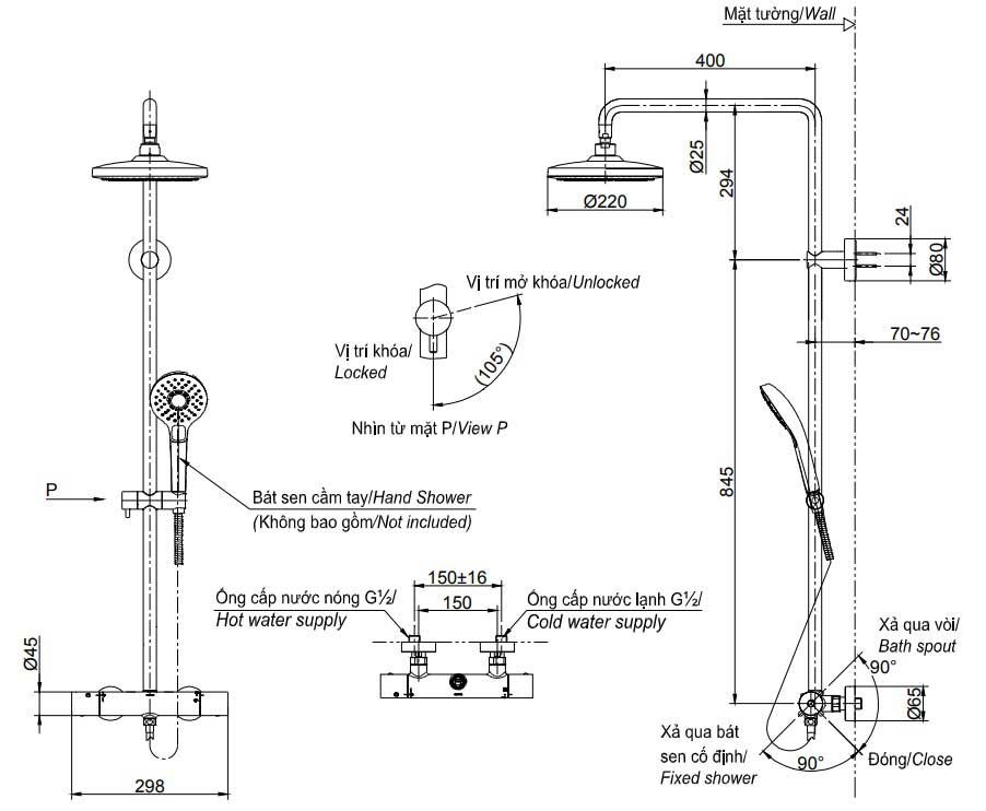 Áp lực nước : 0.05MPa ~ 0.75MPa