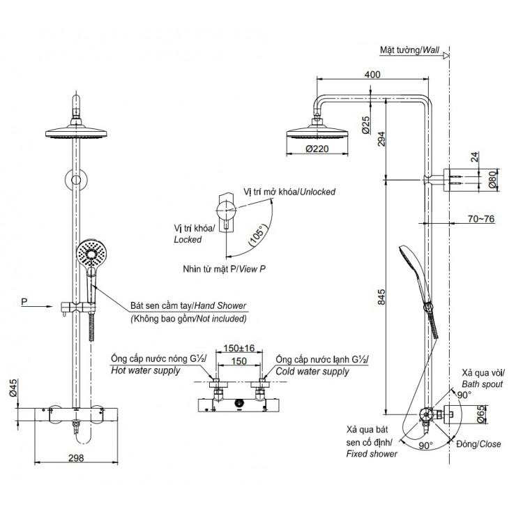 Áp lực nước : 0.05MPa ~ 0.75MPa