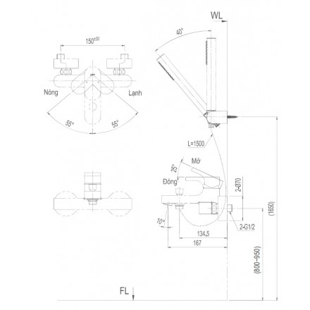 -Áp lực nước : 0.05 MPa ~ 0.75 MPa