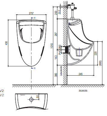 Tiểu nam treo tường, van xả cảm ứng, dương...