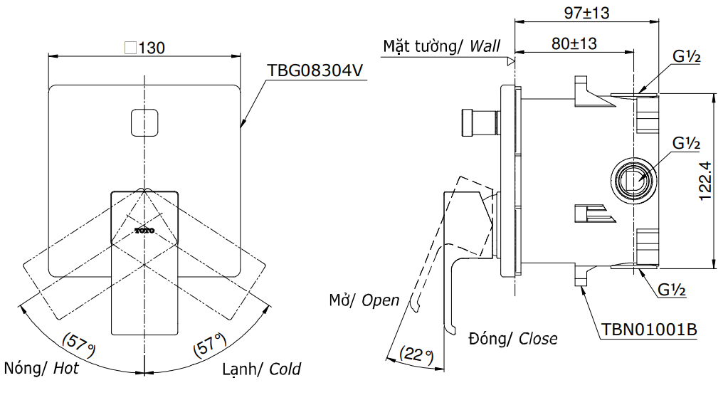 Van gật gù điều chỉnh nóng lạnh GC TBG08304VA/TBN01001B kèm nút chuyển hướng và phụ kiện âm tường. TOTO TBG08304VA/TBN01001B Trả Góp 0đ