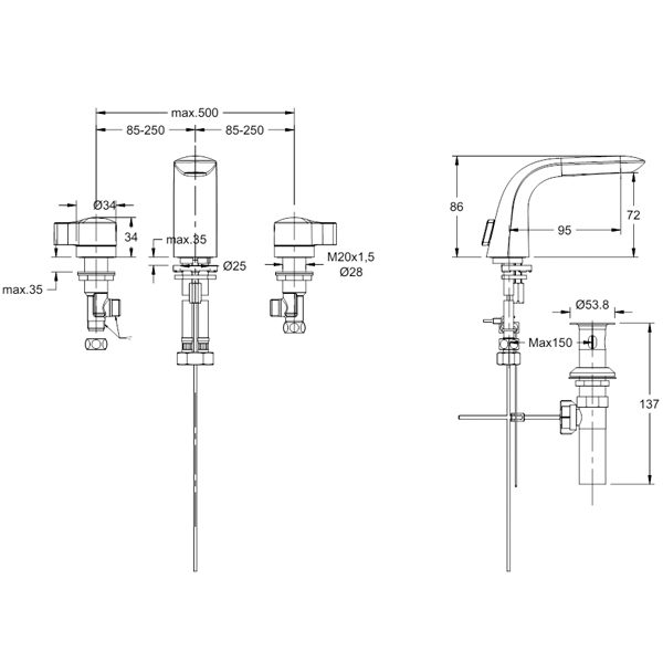 Kiểu: Vòi lavabo 3 lỗ nóng lạnh