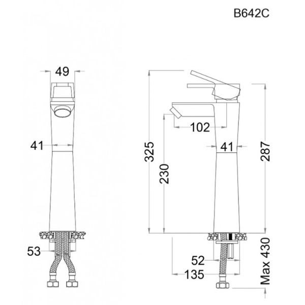 Kích thước chiều cao vòi H: 325 mm