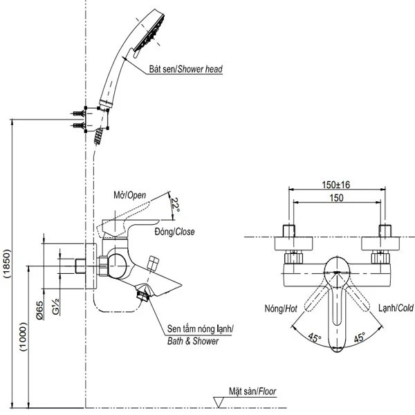 Áp lực nước 0.05MPa ~ 0.75MPa